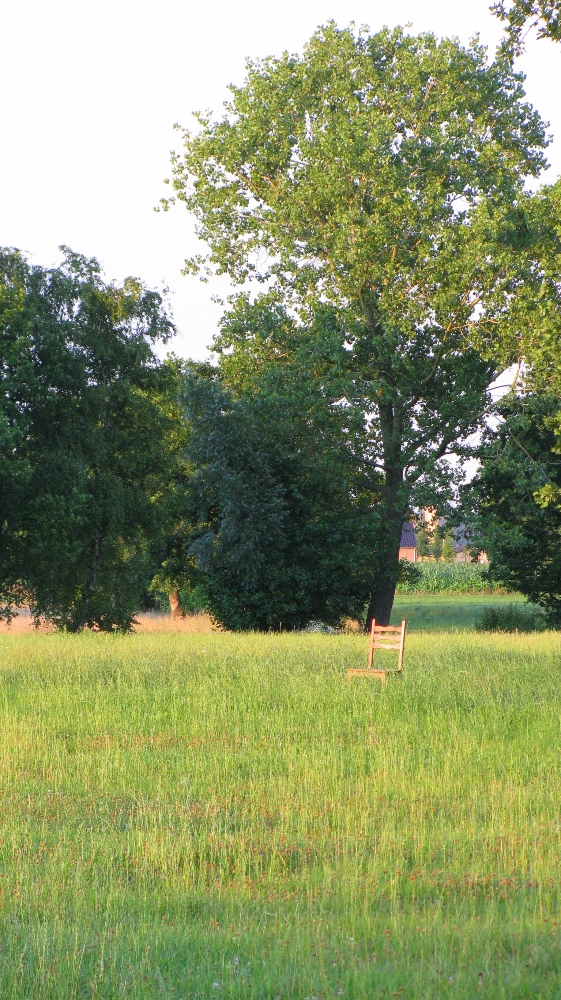 een stoel in een weiland, een rustpunt voor de boer