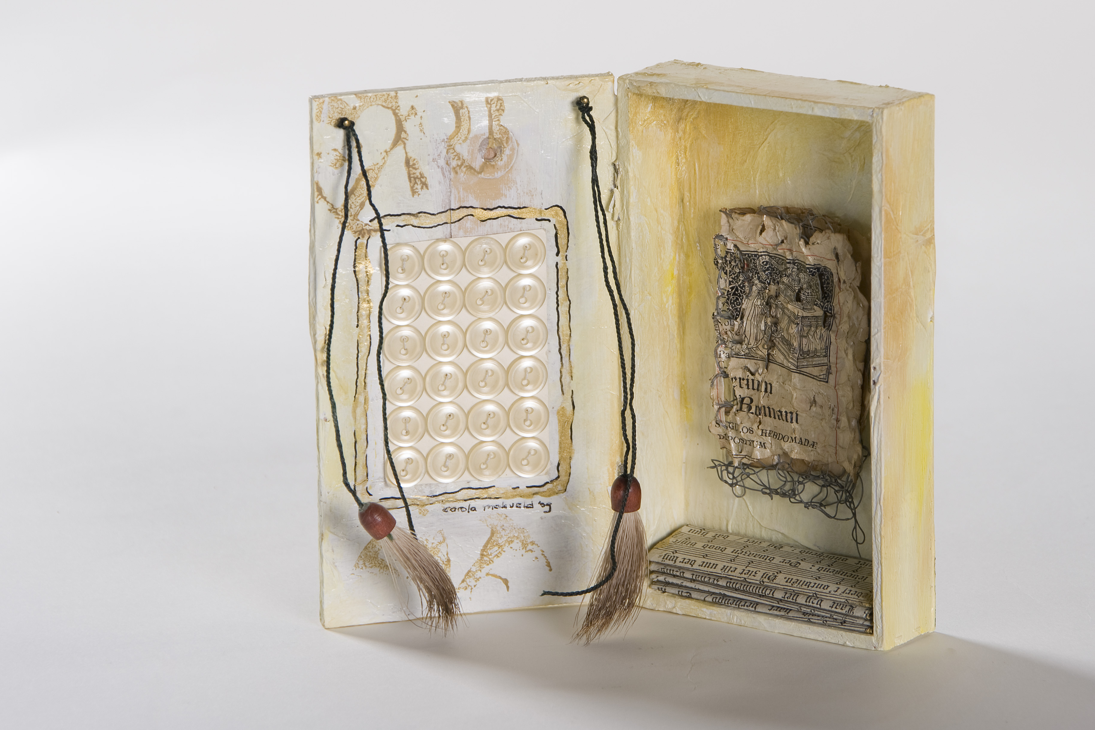 Klein Hout Herinnering Papier Kunst Textiel Bijzonder Icoon Kistje Doosje Boekje Knopen Waardevol