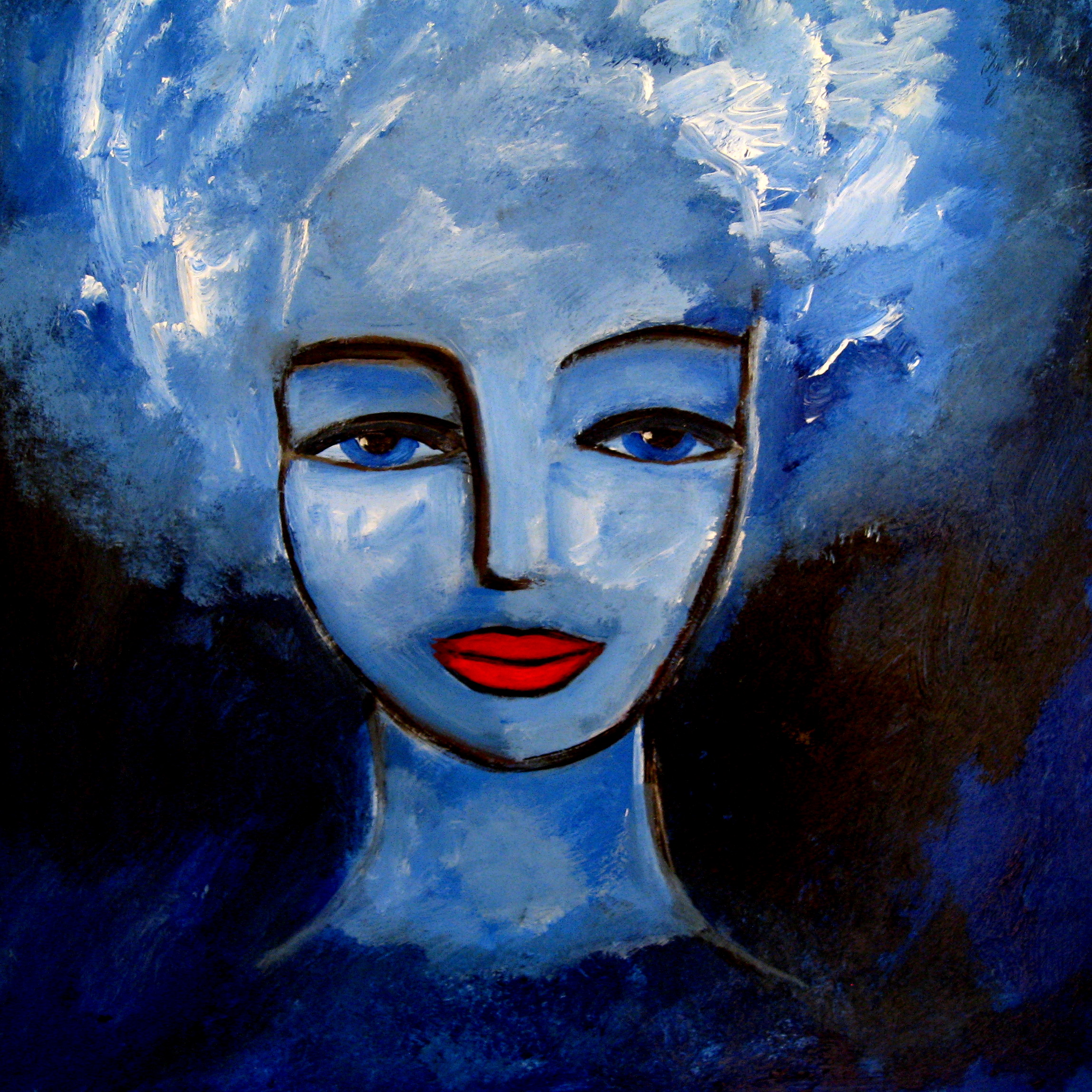 Schilderij Blauw Portret Blue Portrait Painting