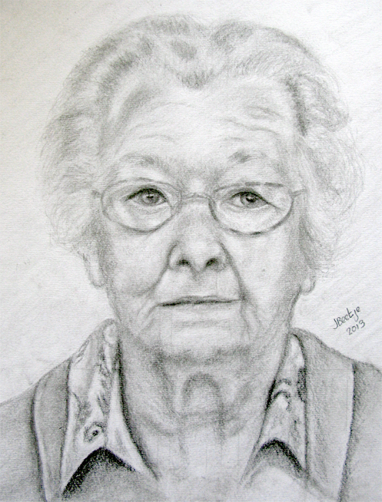 Dit dametje is 95 jaar oud en doet nog steeds haar eigen boodschappen. Ze is heel lief maar is zeker niet op haar mondje gevallen.
