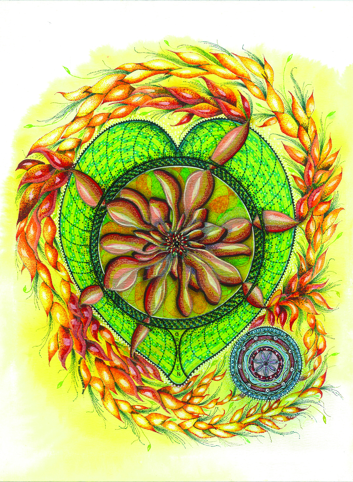 Rood Oranje Geel Blauw Groen Inkt Mandala Turkoois Pointilleren
