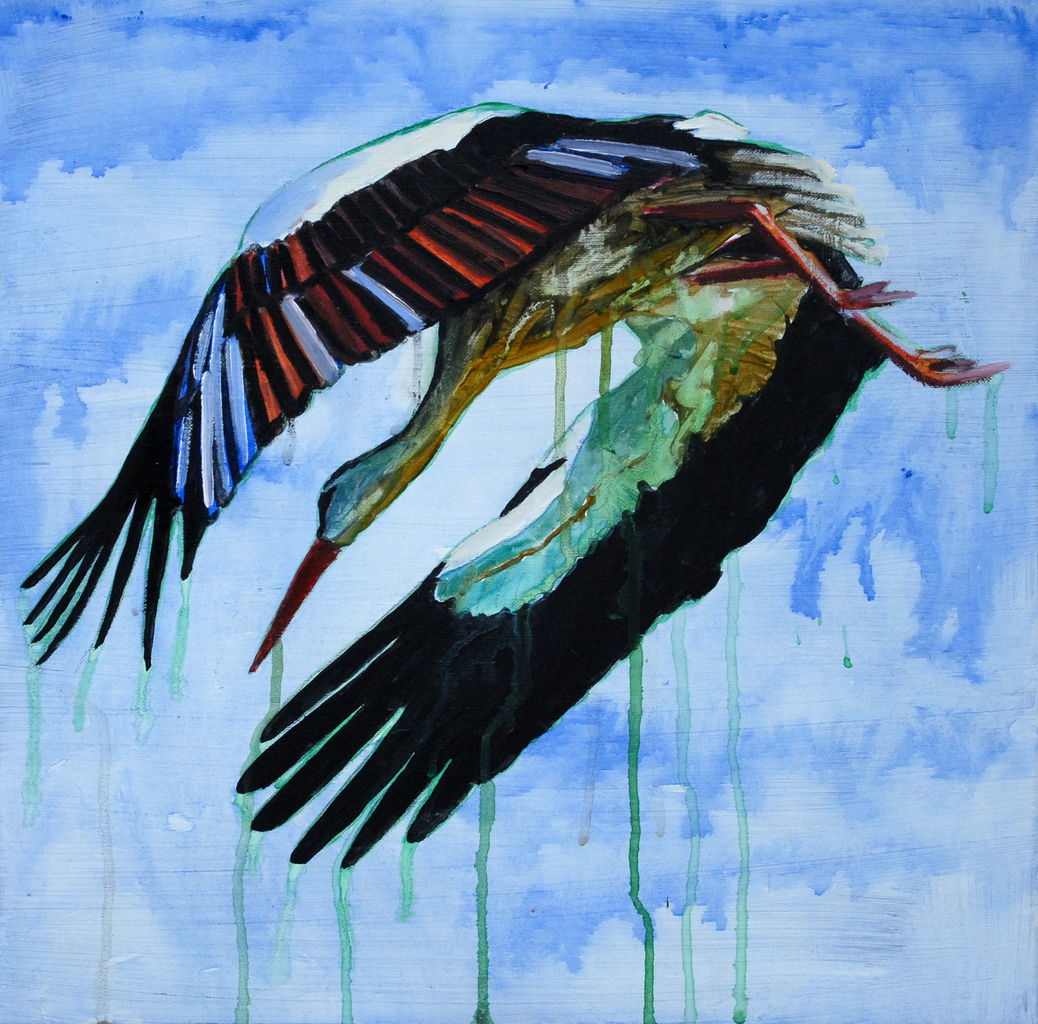 Ooievaar in de regen.