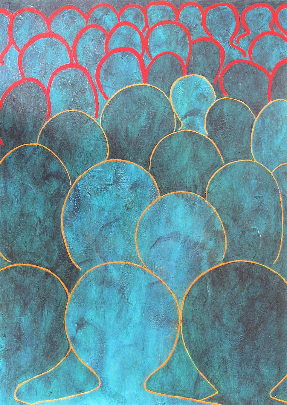 de rode mensen zijn de mensen met de opgeblazen auras, veel praten en niets doen, de gele heben dunne lijnen en vallen niet op, zijn geen schreeuwers, geen blaaskalken, meer de zwijgzame wijzen.