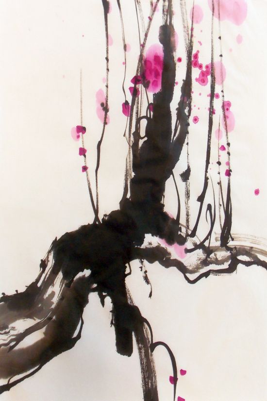 Sumi e Pruimenbloesem, inkt, waterverf
