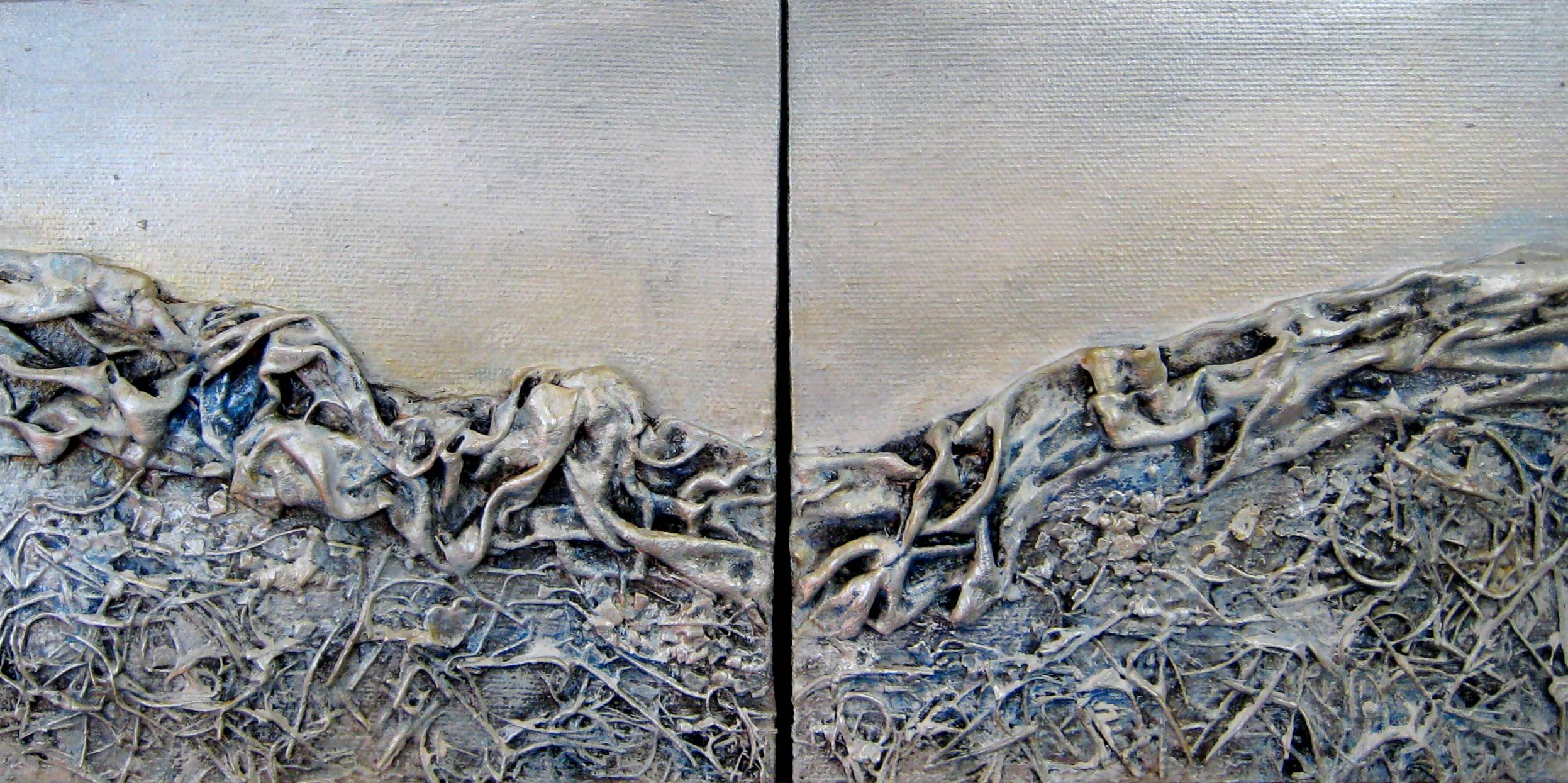Olga Van Dijk Silver Zilver Abstract Landscape Landschap Tweeluik Diptych