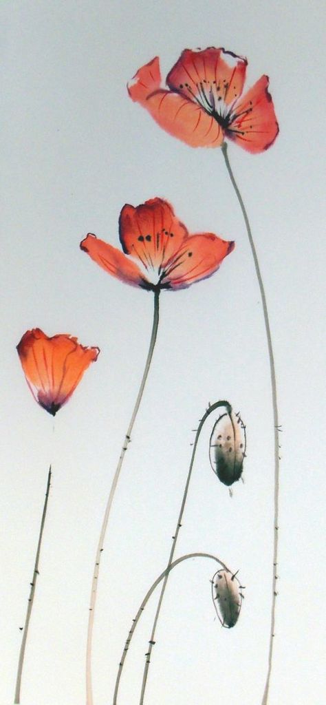 Klaprozen, sumi e en waterverf