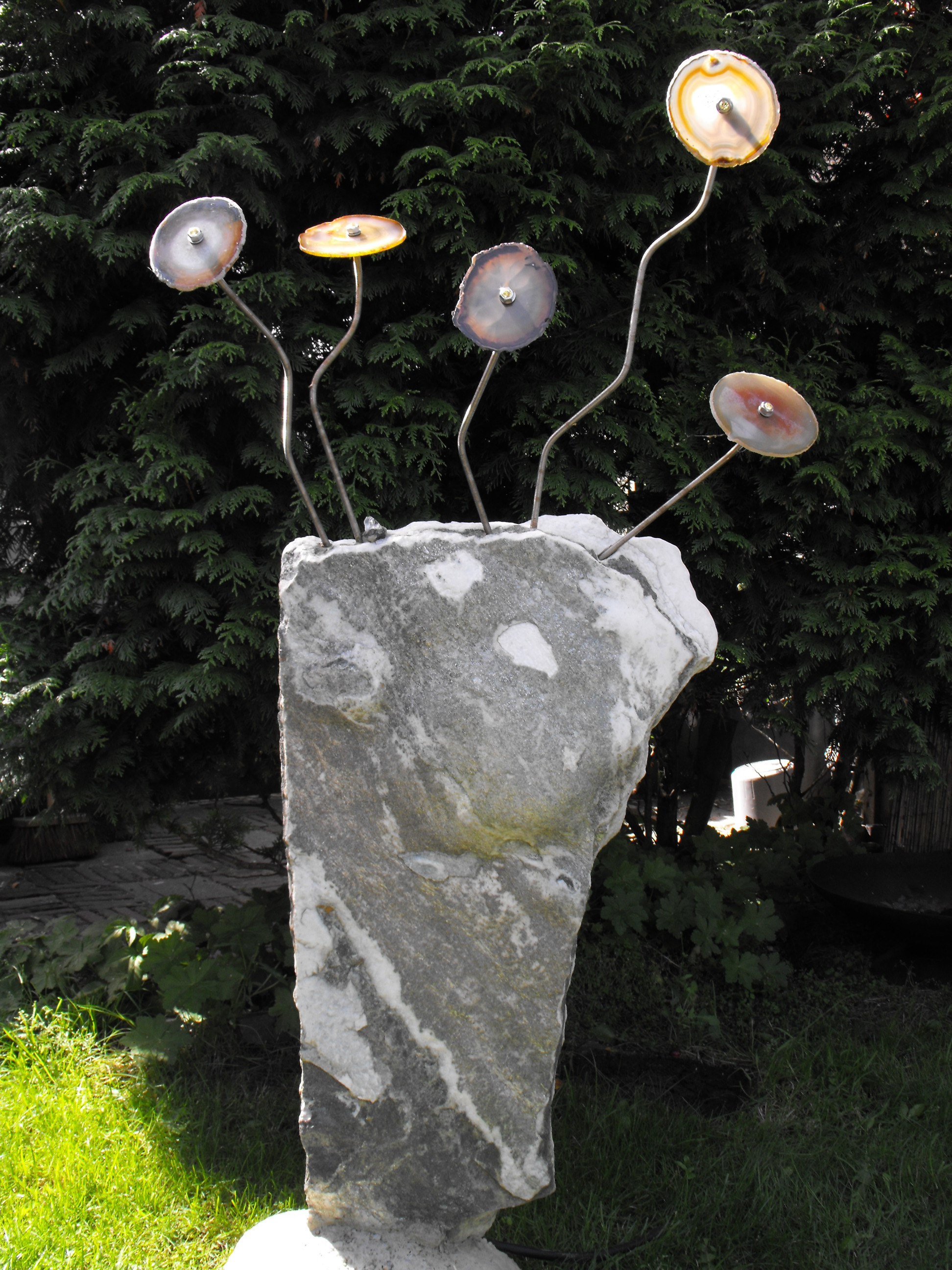 Mijn werk omvat schilderijen sculpturen lampen en waterbronnen. Deze bestaan uit natuursteen in combinatie met mineralen en soms kristal.tevens werk ik met hout,metaal,glas en mozaïek.