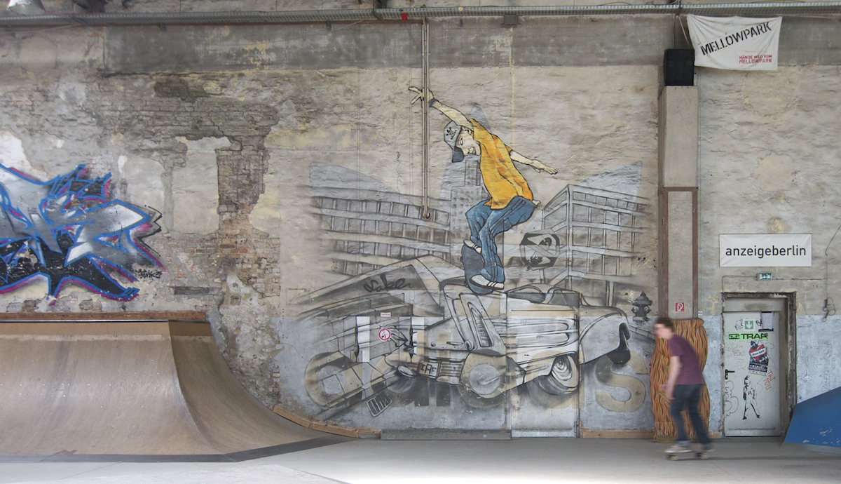 Skater in de skatehal van de RAW kunstenaars aan de Revalerstraße foto is inclusief passepartout