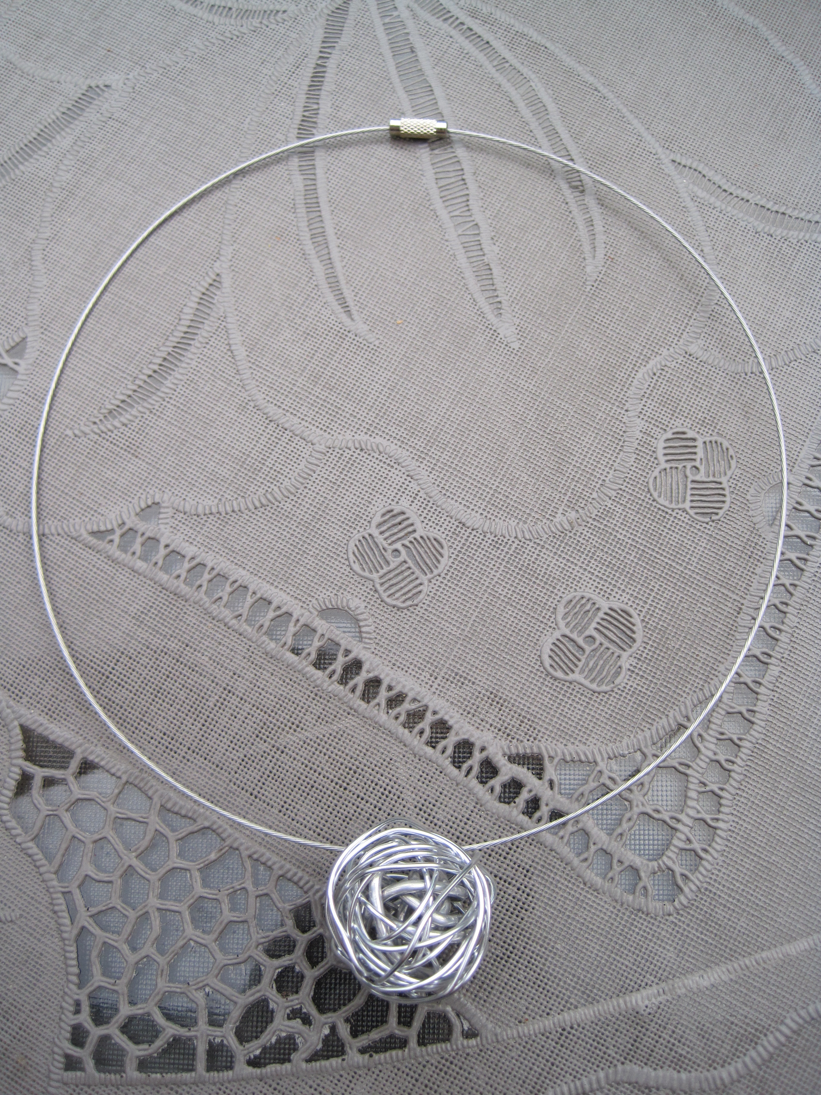 Hanger van 1mm alluminiumdraad, doosnede 3 cm, aan stalen spang