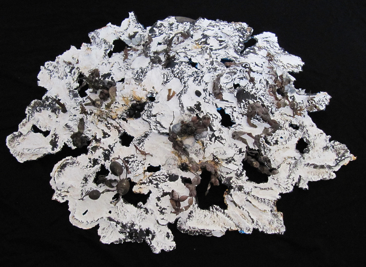 een object gemaakt van papier en materiaal "gevonden" op het strand