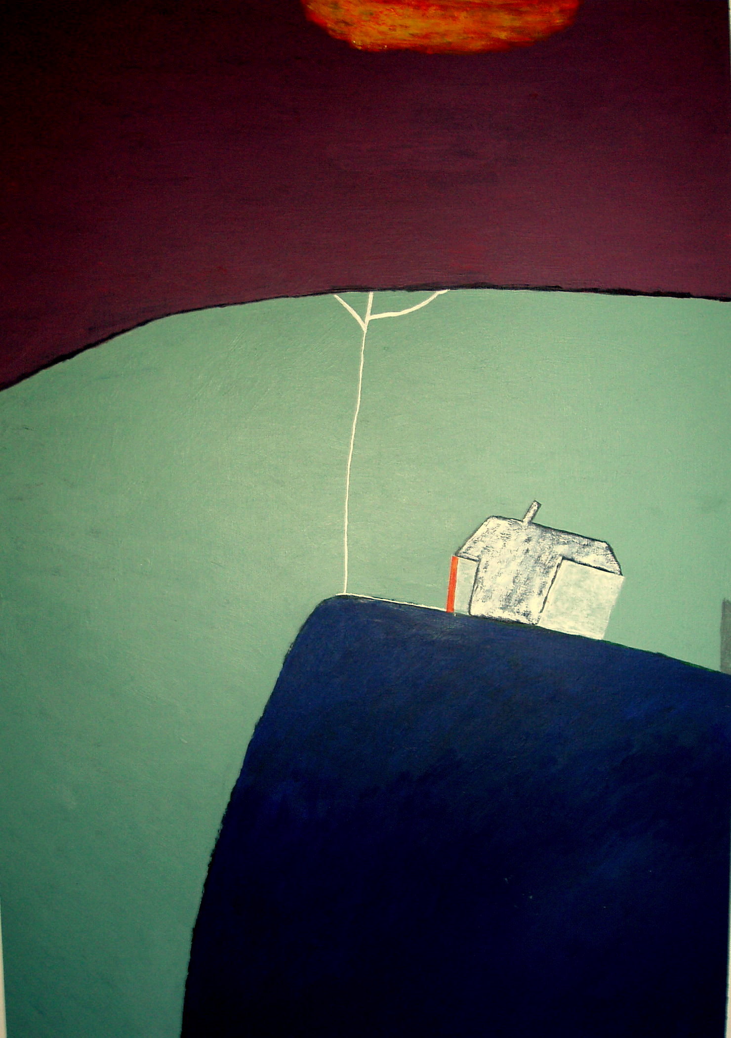 Huis Modern Acryl Groen Nacht Boom Dijk