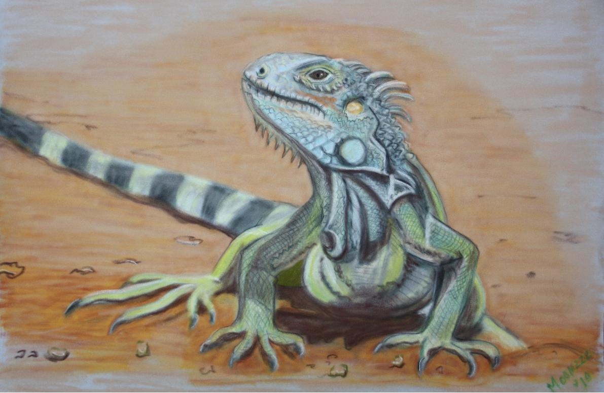 deze Iguana is getekend met pastelkrijt en pastelpotlood op velours doek ...