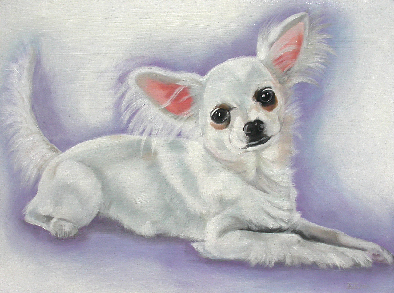 Chihuahua Hond Dog Lief Wit White Purple Paars Hondje Puppy Schilderij Isa Erlinde Ufkes Stephanus