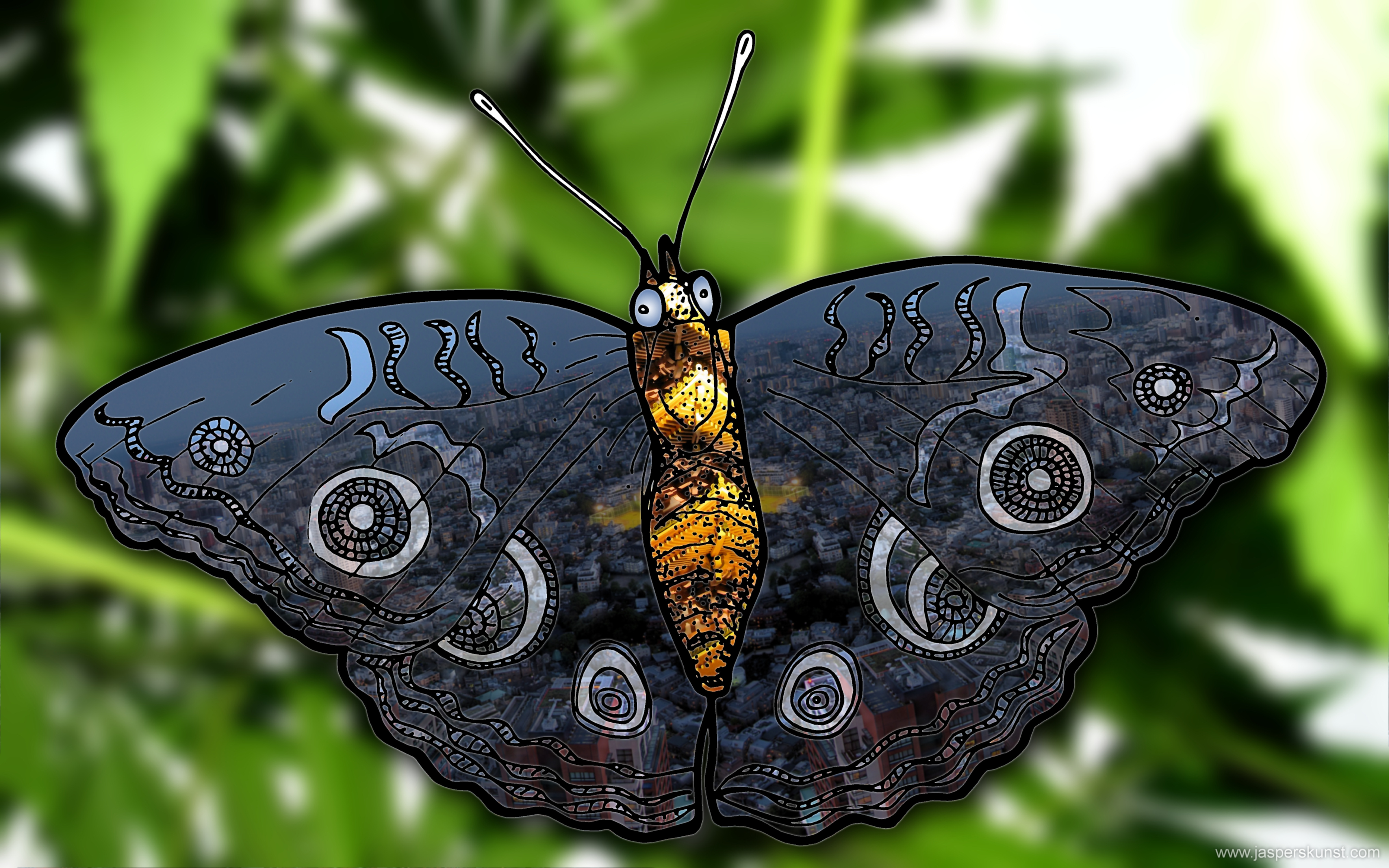 Groen Vlinder Insect Panorama Tokyo Pagoda