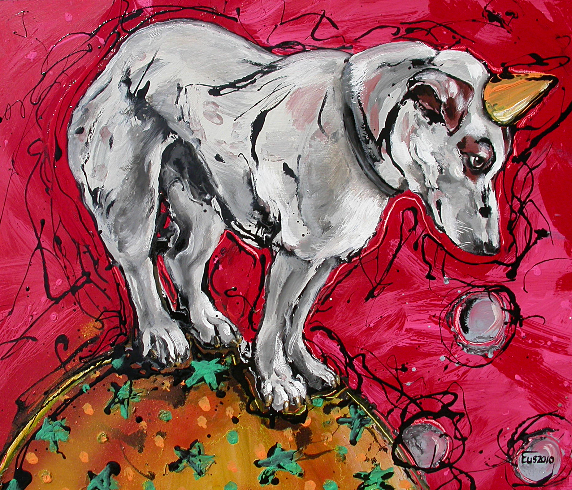 Dieren Red Hond Roos Dog Animals Circus Jack Bal Ball Russel Erlinde Ufkes Stephanus Animalart Dierenkunst Hondenkunst Dierenschilderijen Animalpaintings Hondenschilderijen Dogspaintings Dogsart