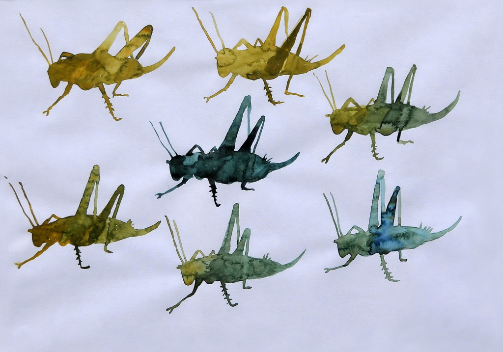 Blauw Groen Aquarel Sprinkhaan Grasshoppers