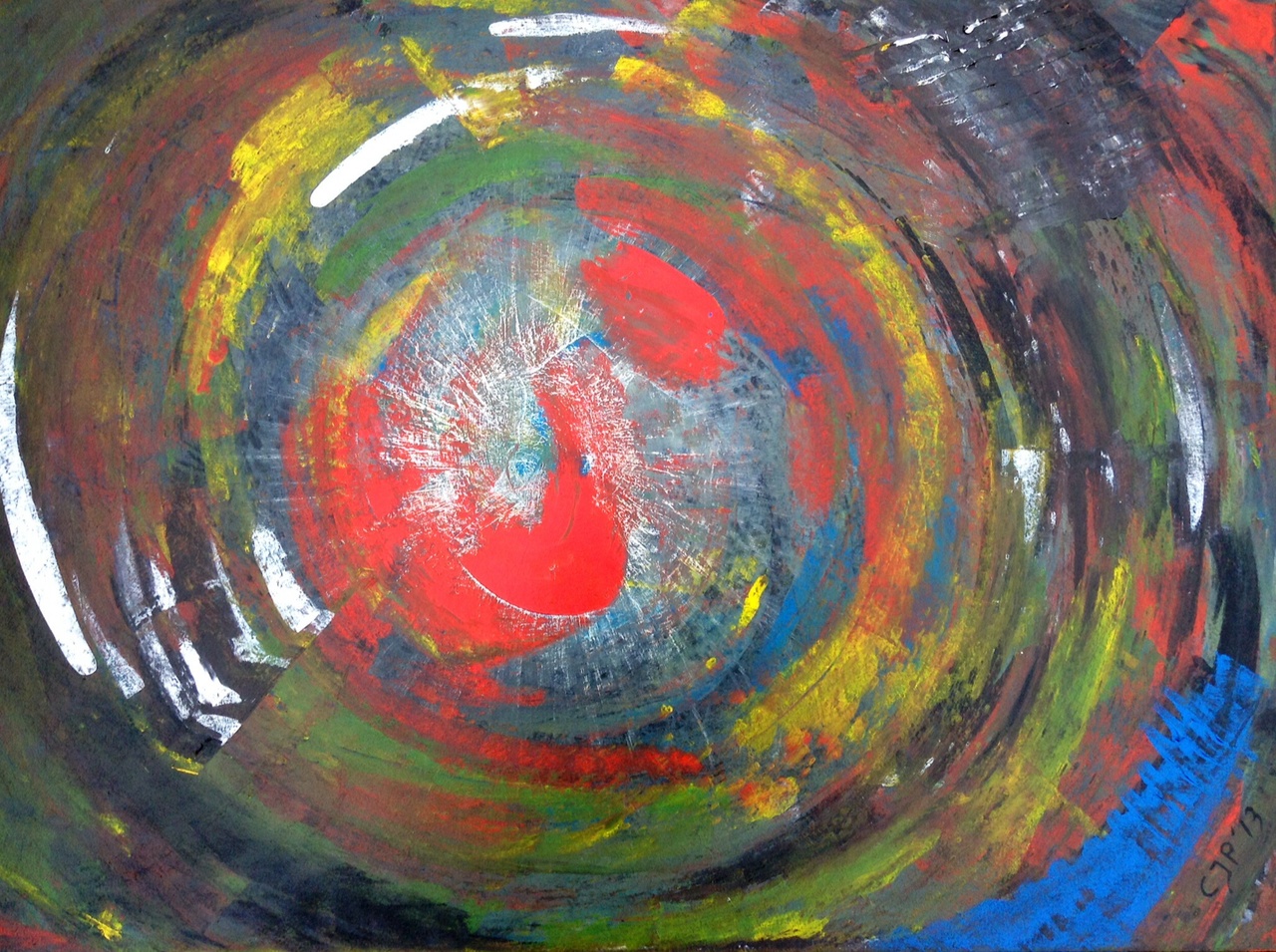Echo van het leven. Abstract expressionisme. Het doek is inclusief houtenlijst en de randen zijn rondom mee geschilderd. De acrylverf met een vernislaag op een canvas doek aangebracht Acrylverf op een canvasdoek dat is gespannen over een houten frame.