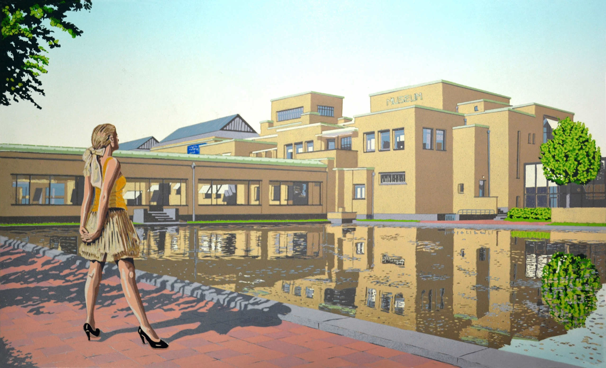 Museum Benen Spiegeling Vijver Ballet Lino Hoogdruk Den Haag Gemeentemuseum Weerschijn Linocut Linoleumsnede Pumps Degas Danseresje