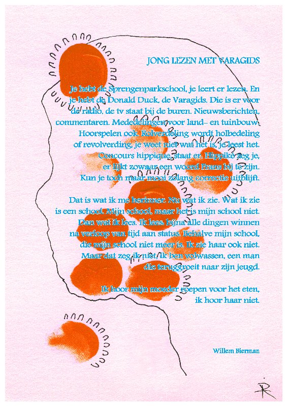 Uitgevoerd ontwerp (digitaal bewerkte tekening) voor gedicht van Willem Bierman, stadsdichter 2009 - 2010 in opdracht van gemeente Apeldoorn.