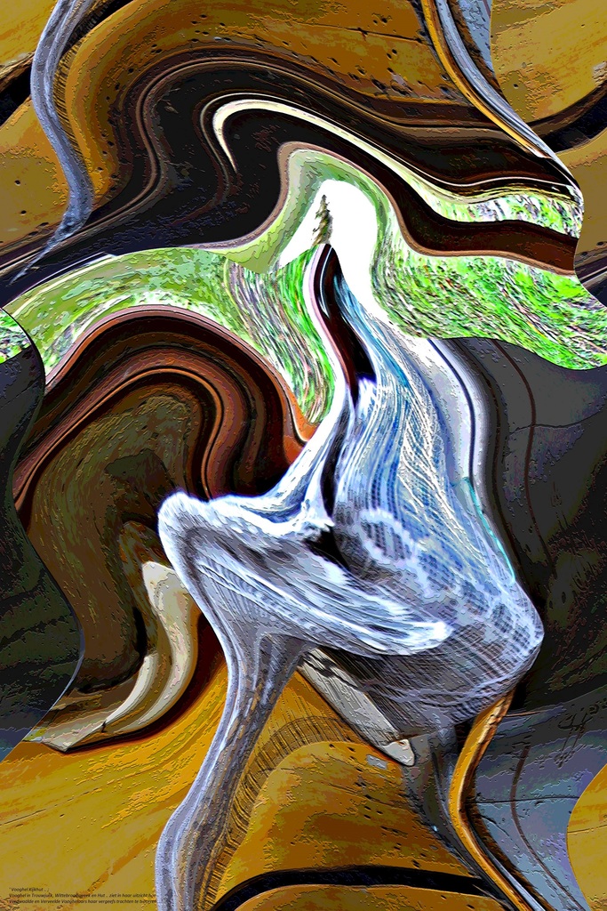 Vooghel in Trouwjurk, Wittebroodsweek en Hut .. ziet in haar uitzicht hoe Verdwaalde en Verveelde Vooghelaars haar vergeefs trachten te traceren .. (382)