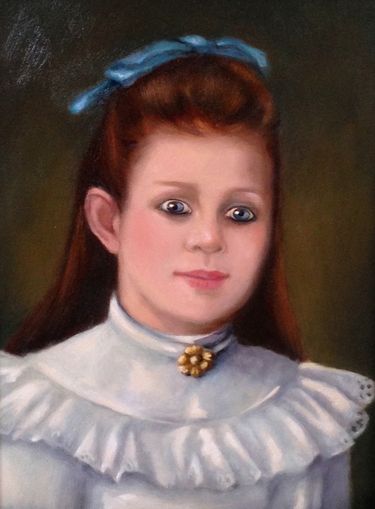 Mathilde baronesse de Weijdenblick, de ogen zijn verhoogd. Als je erlangs loopt lijken ze te bewegen. Ingelijst in 5 cm diepe lijst.