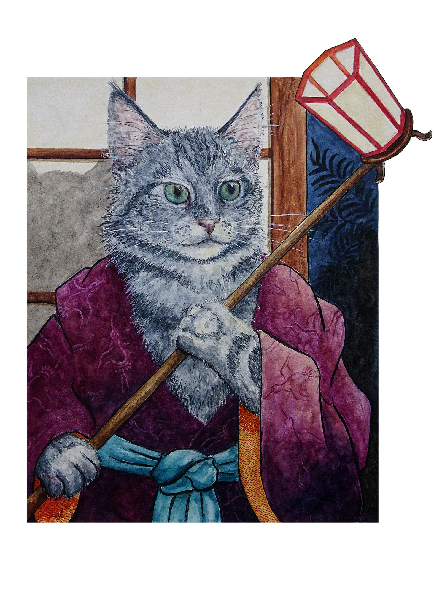 Arie de Jong (Alkmaar, 1961) verbindt in haar werk haar passie voor katten met haar interesse voor de Japanse cultuur en (krijgs)geschiedenis.