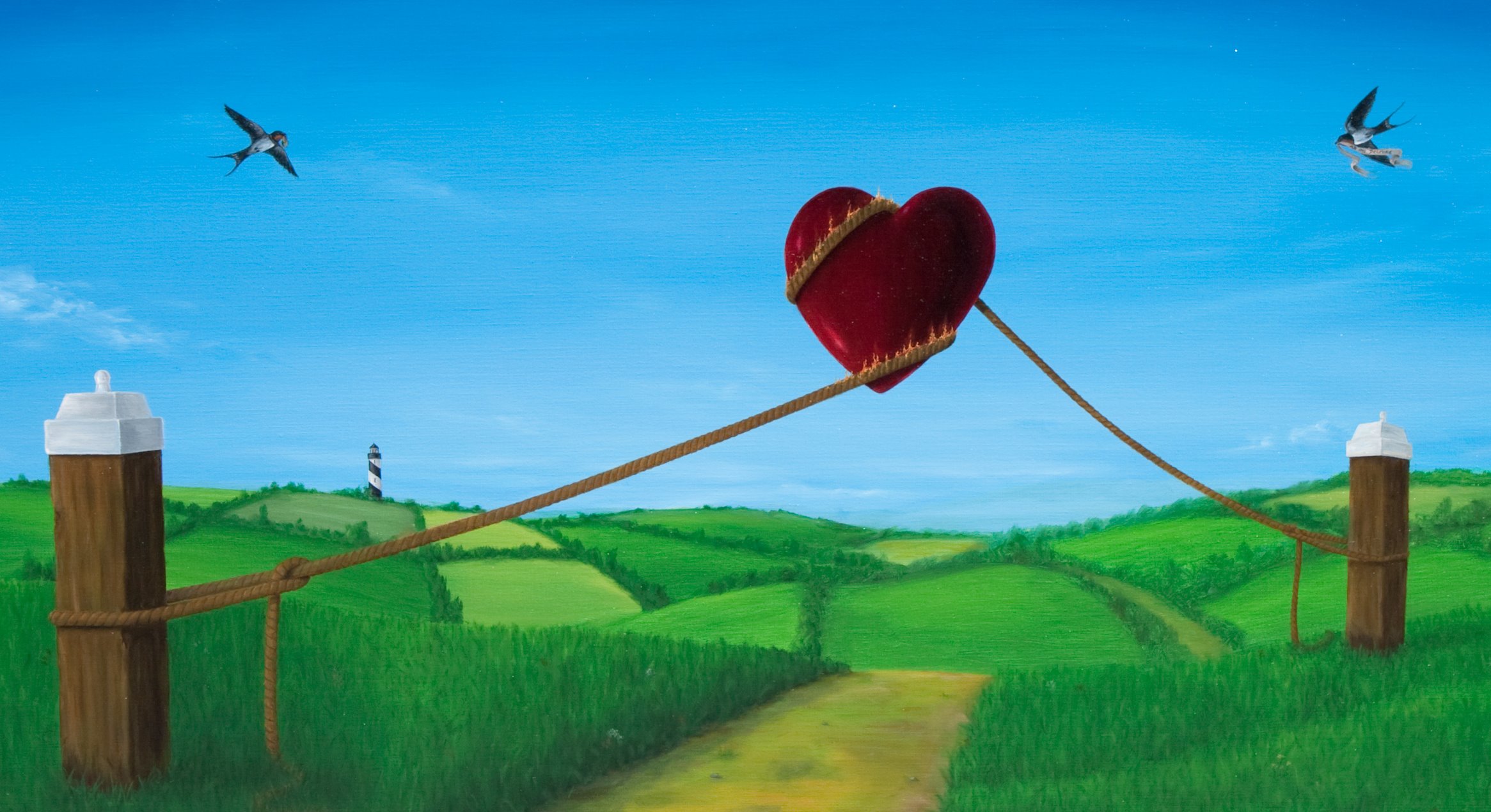 Surreeel Rood Landschap Blauw Vogel Groen Hart Liefde Love Passie Surrealisme Huwelijk Tattoo Zwaluw Voorspoed