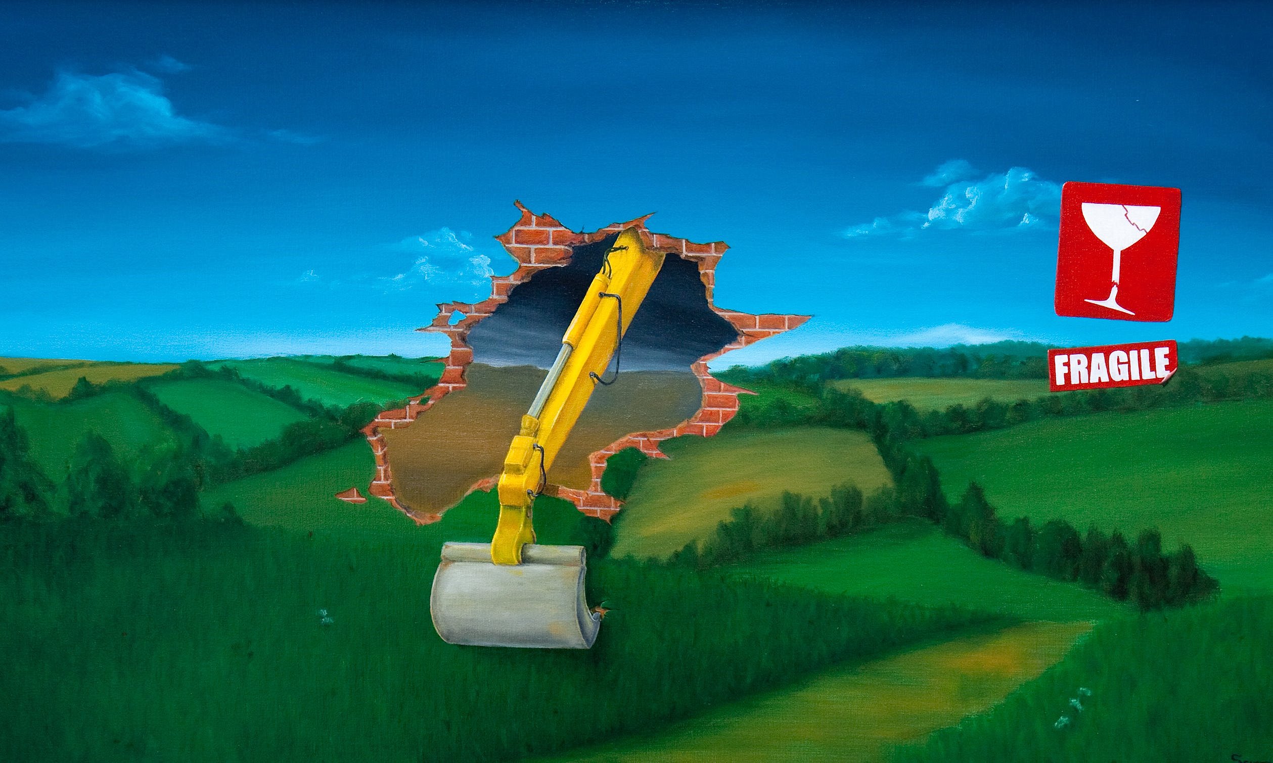 Schilderij Landschap Blauw Wolken Groen Glas Olieverf Sureeel Surrealisme Clouds Exto Surrealism Margriet Kraan Parks Aalsmeer Dali Surealisme Sureel Breekbaar Kca Fragile Kunstroute Sticker