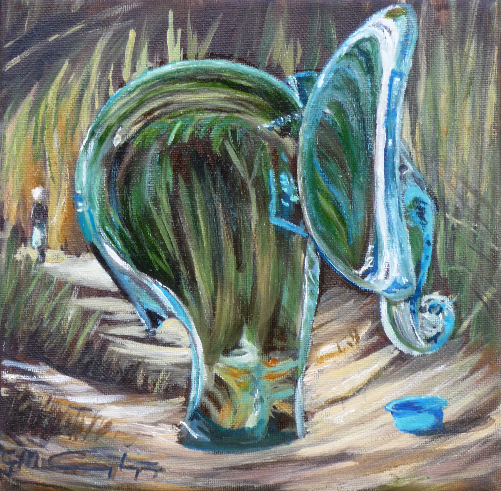 Glas Elephant Oilpainting Natuur Swaziland Olifanten Nature Weeskinderen Zuid-afrika South-africa Water-halen