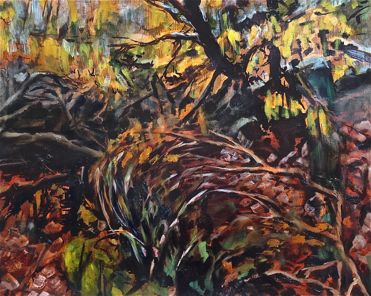 Mijn grote liefdes is schilderen naar waarneming; (zelf)portret en vooral bos en bomen. En plein air; bijna dagelijks ben ik in het bos om te schilderen.