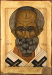 Moderne versie van een bestaand 16e eeuws Ikoon (detail van een 'zes daagse Ikoon') met gebruik van moderne technieken en goud.