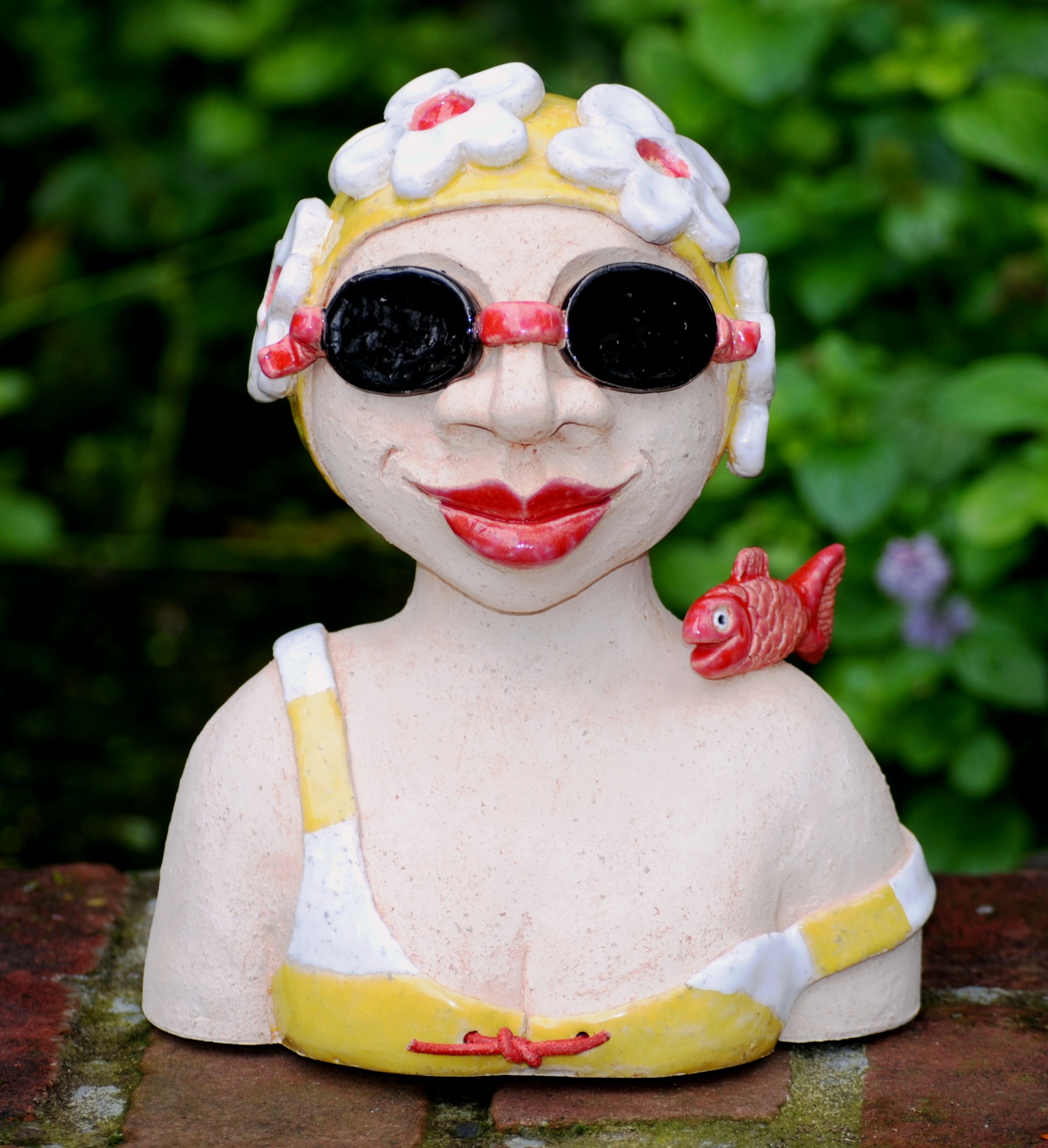 Zwemstertje met bloemenbadmuts.