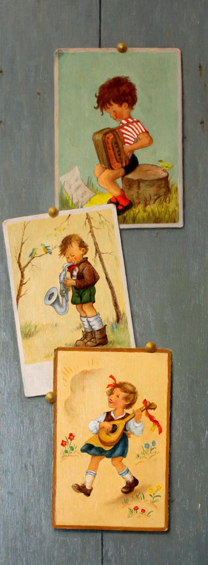 Oud Muziek Nostalgie Kids Postcard Fijnschilder