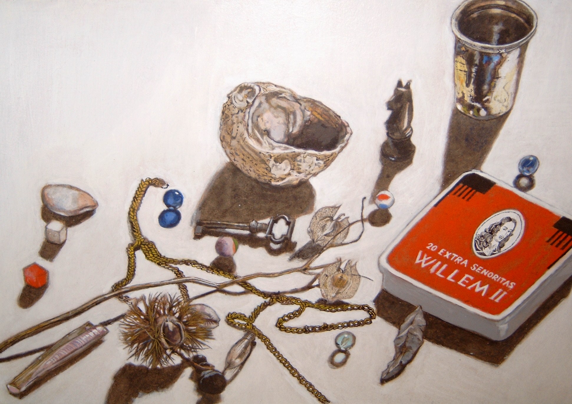 modern stilleven uitgevoerd op hardboard en in acryl.