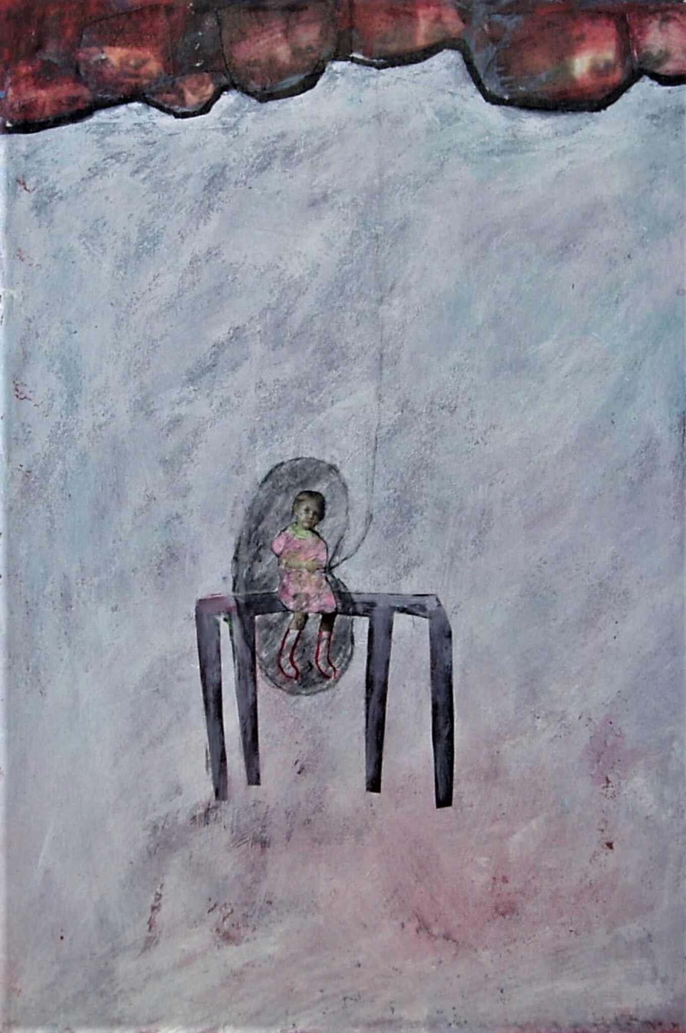 Wit Meisje Landschap Rode Ogen Tafel Kindje Laarsjes