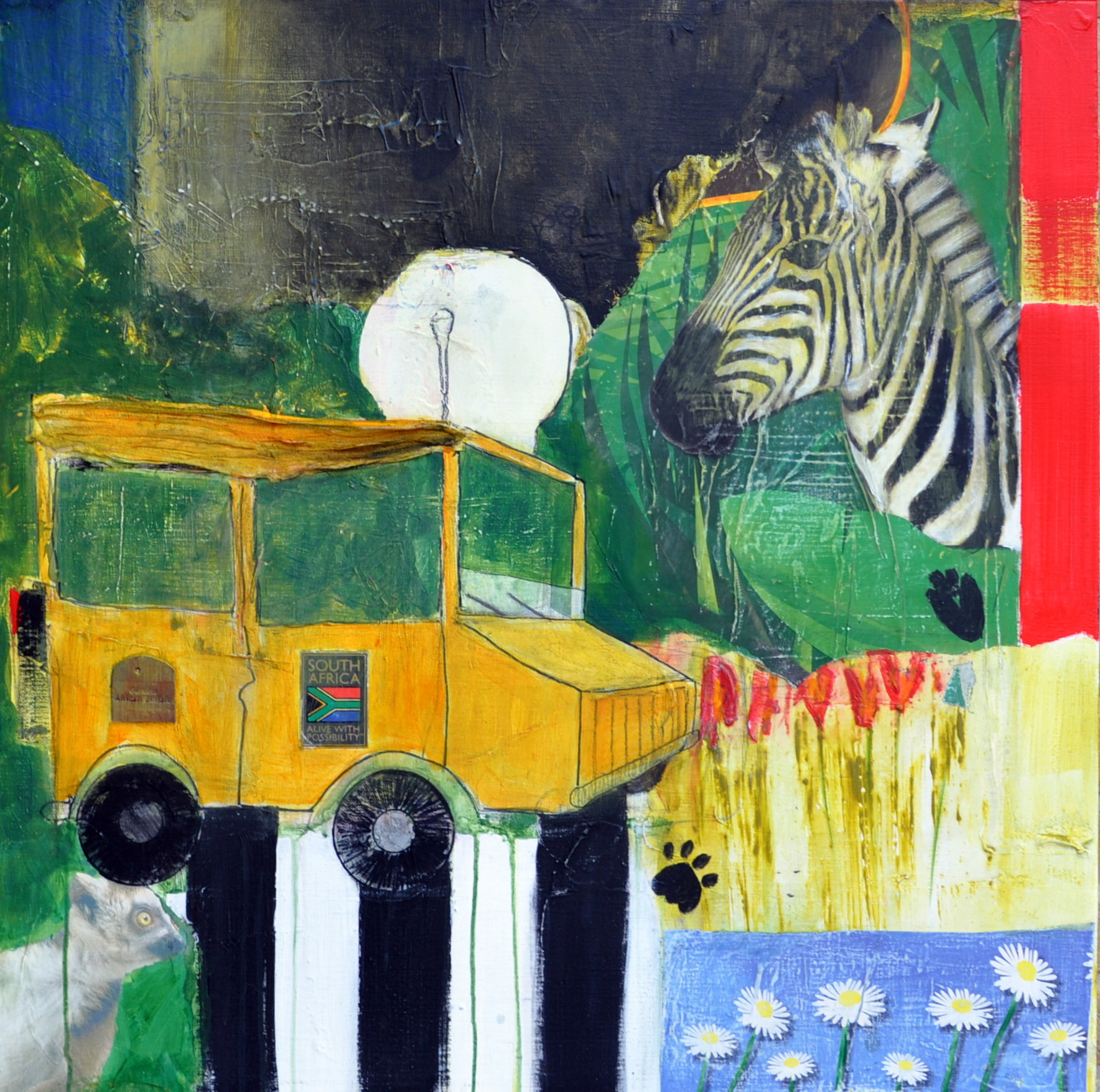 Acryl Olifant Mixed Media Kleuren Grafiek Collage Strepen Zebra Meerkat Jeep
