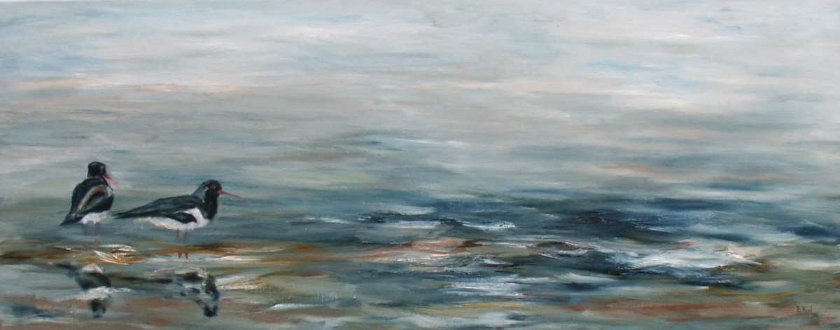Scholeksters in de branding
