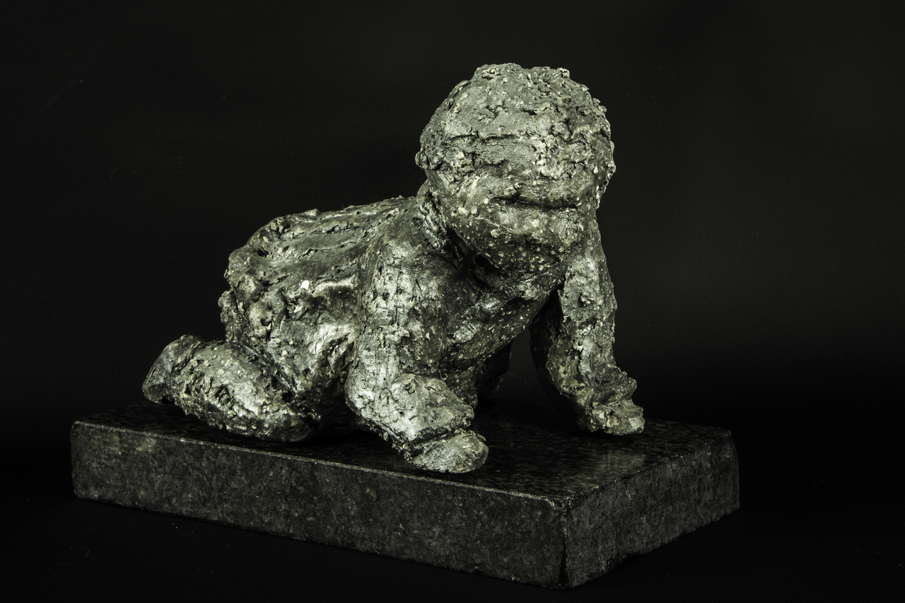 Een kleine kindje (Baby) op handjes en voetjes........, het begint net met kruipen De eerste tekenen naar zelfstandigheid? De eerste beweging naar zelfstandigheid! Een bijzonder lief beeldje Gemaakt van grove chamotte wat na een droogtijd is afgebakken op 1000 graden Daarna met verschillende lagen gekleurd Beeldje is geschikt voor binnen en buiten