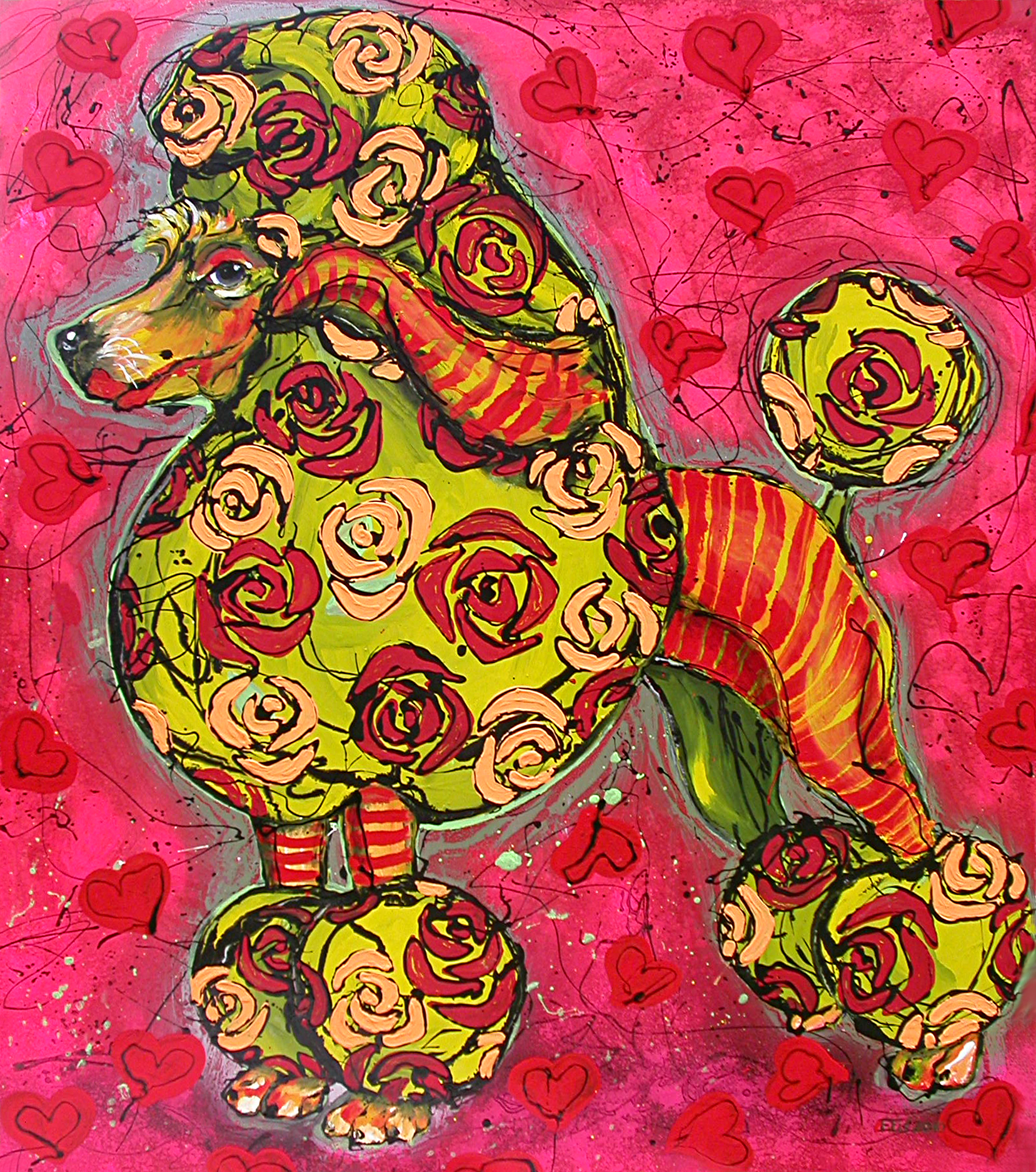 Dieren Liefde Love Hond Roses Dog Animals Hartjes Roosjes Kleurige Poedel Coloured Erlinde Ufkes Stephanus Animalart Dierenkunst Hondenkunst Dierenschilderijen Hearts Animalpaintings Poodle Hondenschilderijen Dogspaintings Dogsart
