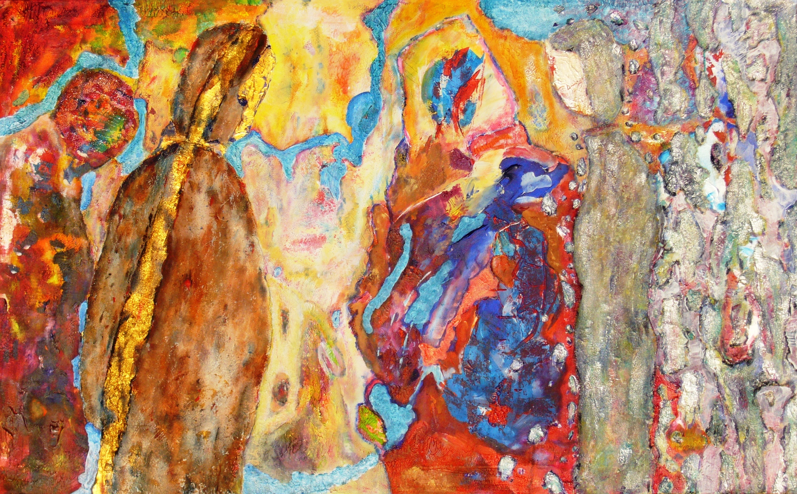 Een kleurrijk avontuur waar ik om een beetje orde in de chaos te scheppen in verschillende technieken figuren heb aangebracht.