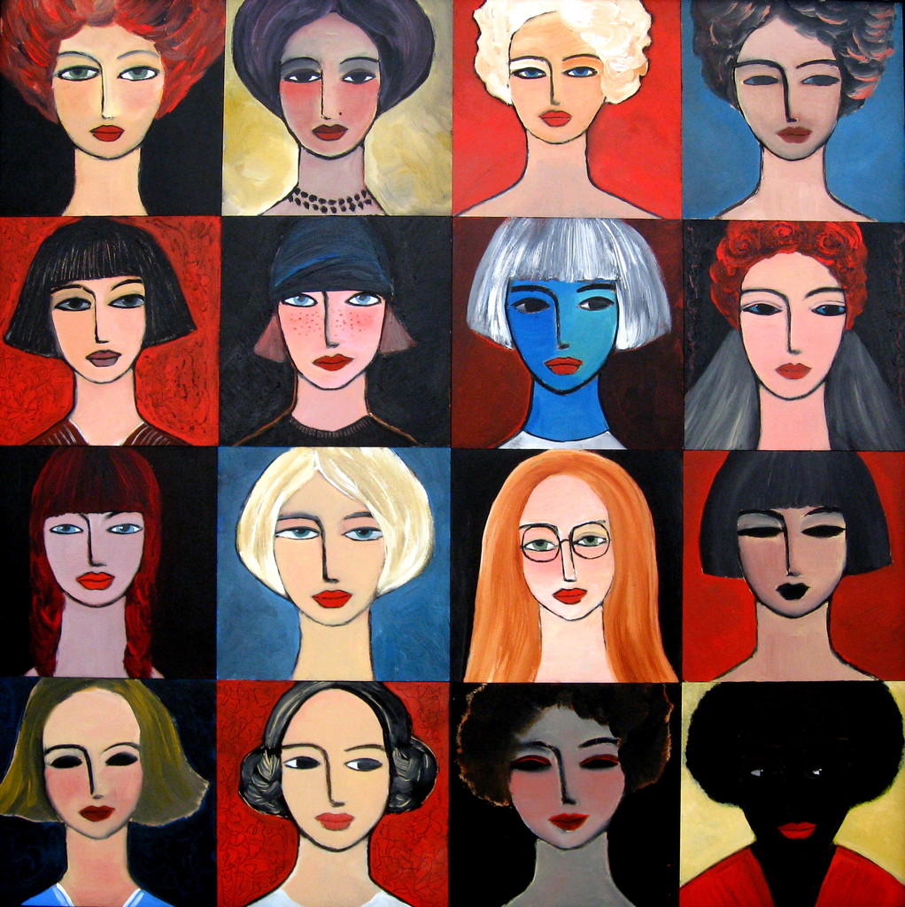 Van Painting Collage Female 16 Portraits Nelly Nieuwenhuijzen