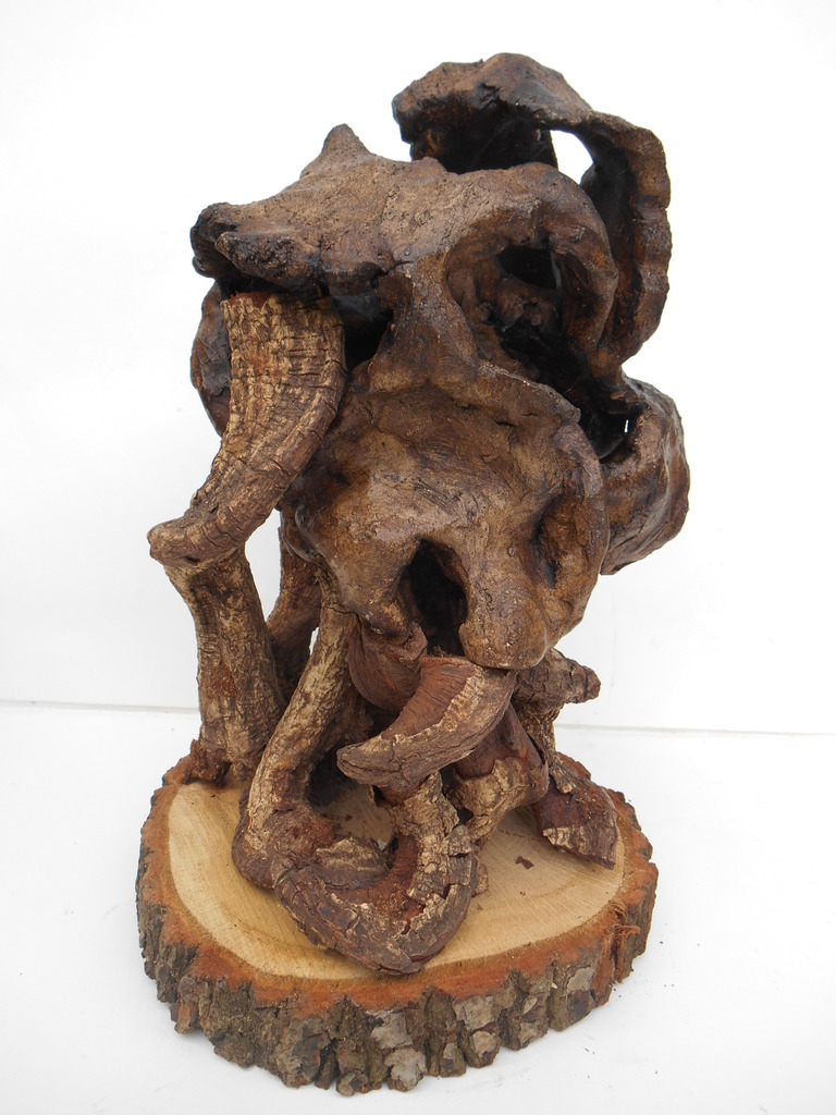 Keramiek en hout in grillige vormen verbonden. je kunt er lang naar kijken en tot rust komen