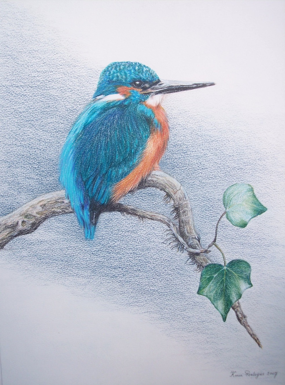 Vogel Wildlife Tekening Realistisch Drawing Tak Animals Tekenkunst Tekeningen Ijsvogel Kleurpotlood Realistic Coloured Klimop Pencil Kingfisher