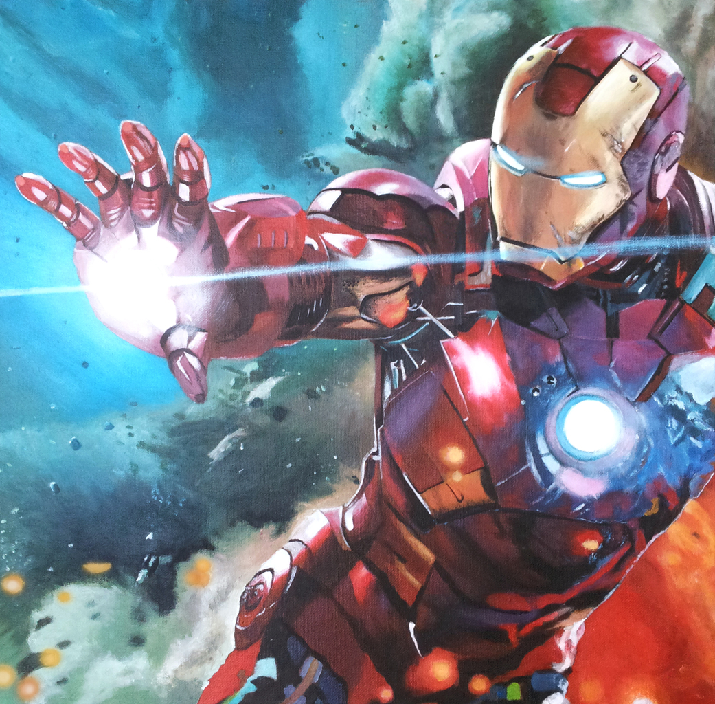 Schilderij van een superheld. 3e van een serie van 3 gemaakt met acryl op doek