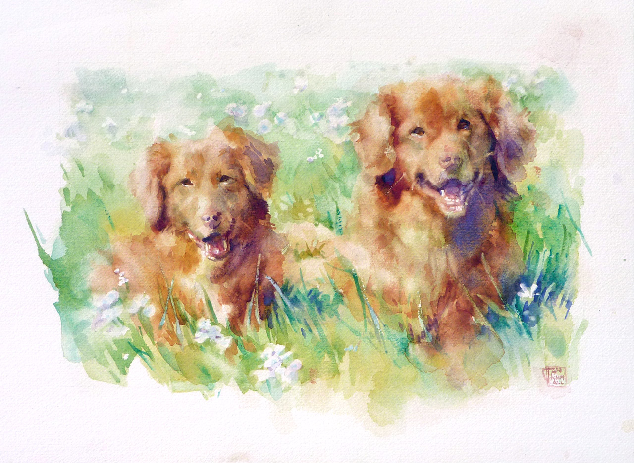 Schilderij Honden Dogs Hond Portret Aquarel Portrait Painting Haar Watercolor Breda Roodharig Redhead Cute Schattig