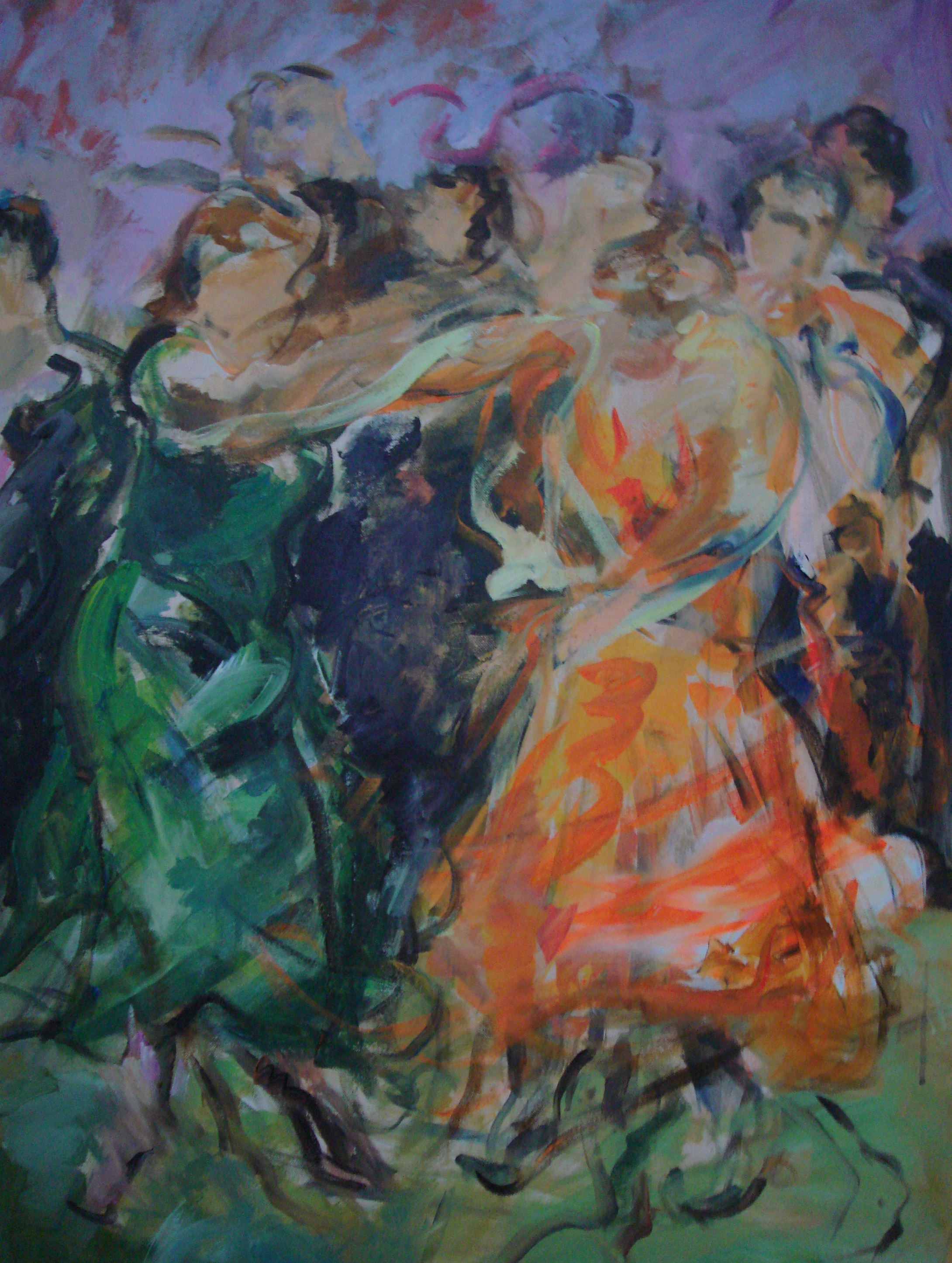 Vrouwen Mensen Oranje Acryl Paars Dans Groen Vrouw Canvas Beweging Dansend Lila Stel Dansen Bewegen Paar Jive