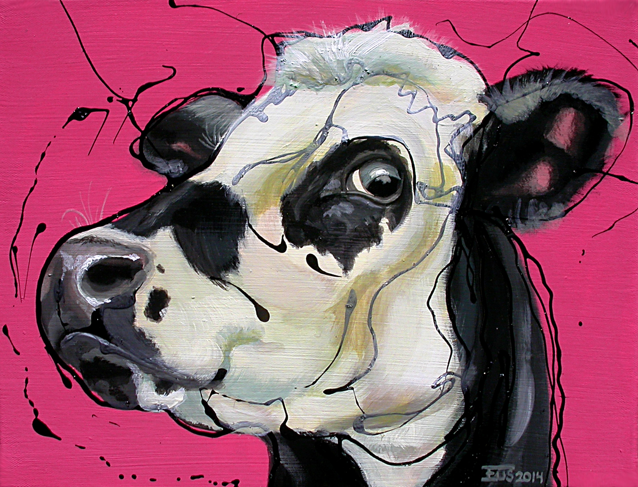 Cow Cows Cowportrait Cowpainting Koe Koeien Koeienschilderij Koeienportret Roze Pink Zwart Black White Wit Vrolijke Schilderijen Erlinde Ufkes Stephanus Eus