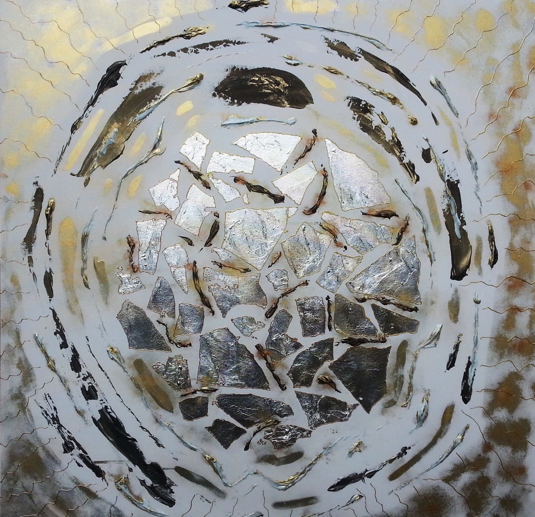 Schilderkunst 3d doek Abstract 100x100 cm Bladzilver Mixed media