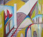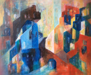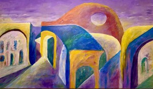 Je vindt: een kleurrijke droomwereld, Zuid-Europees licht, architectonische vormen, zeilend voor de wind. Alles los en vrolijk 'gemodelleerd'.