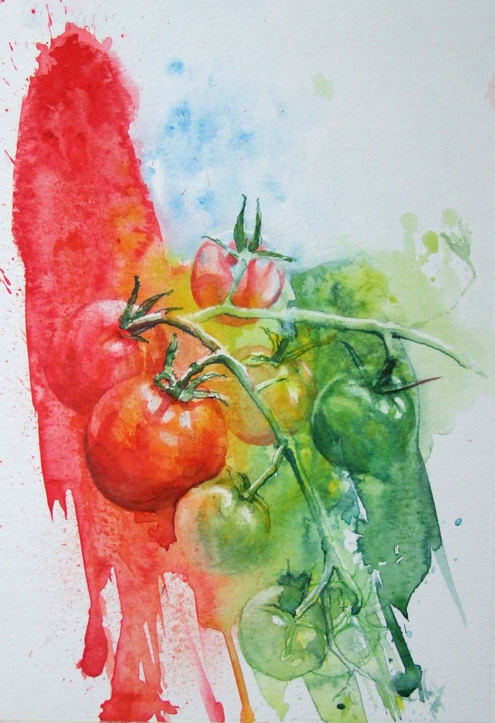 Tomaten Groente Aquarel Figuratief Abstraherend Stilleven Illustratie